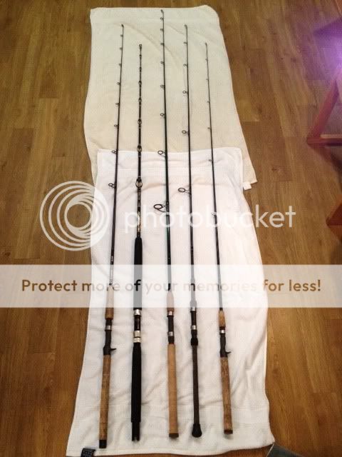 1. Gloomis Conventional. Musky Rod- 7'2''. 15-25lb. 3/8-1oz . Excellent rod. retail $280(new). -Will take $180