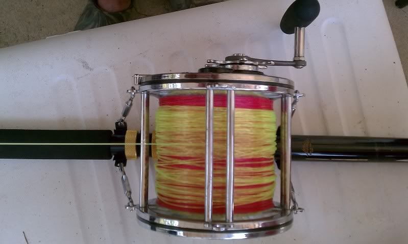 Comes Completely Spolled with 150# Test Power Pro Braided Line Plus a 50 Yard Top Shot of 130# Test Suffix Big Game Yellow Mono.