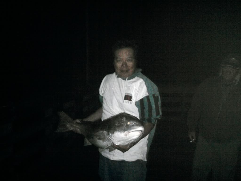 Went out to anclote pier monday night the 12th with my grandfather and his fishing buddy Eddie. We were just using big live pinfish/ grunts and strips of cut pinfish. Eddie on a live 4 inch grunt caught this beast (release successful). Sorry for the crappy pics, they are off my metro POS phone (camera was dead).