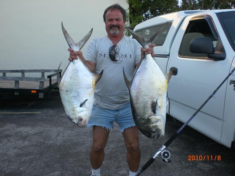 Mt friend Lui Iglesias called me yesterday afternoon he said he had some fish to show me so I said "come by' and he pulled out these two nice permit .The bigger one is probably 25 lbs and the smaller maybe 16 lbs,Both were caught using live jumbo shrimp at the Long Key bridge.He also caught some snapper ,blue runners and mackeral.Both fish were caught on the incoming tide.No shark baits were put out as he only fished from 7am til 5 pm.Lui you the man on long key bud!!