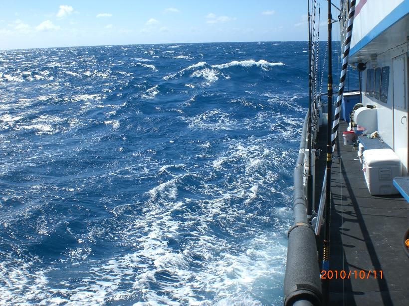the sea was a furious mess (6- 8 foot seas) the first two days of our fishing trip and some folks were seasick and puking there guts out,,,,"free chum,free chum" i would joke every time I'd catch someone letting it rip over the side