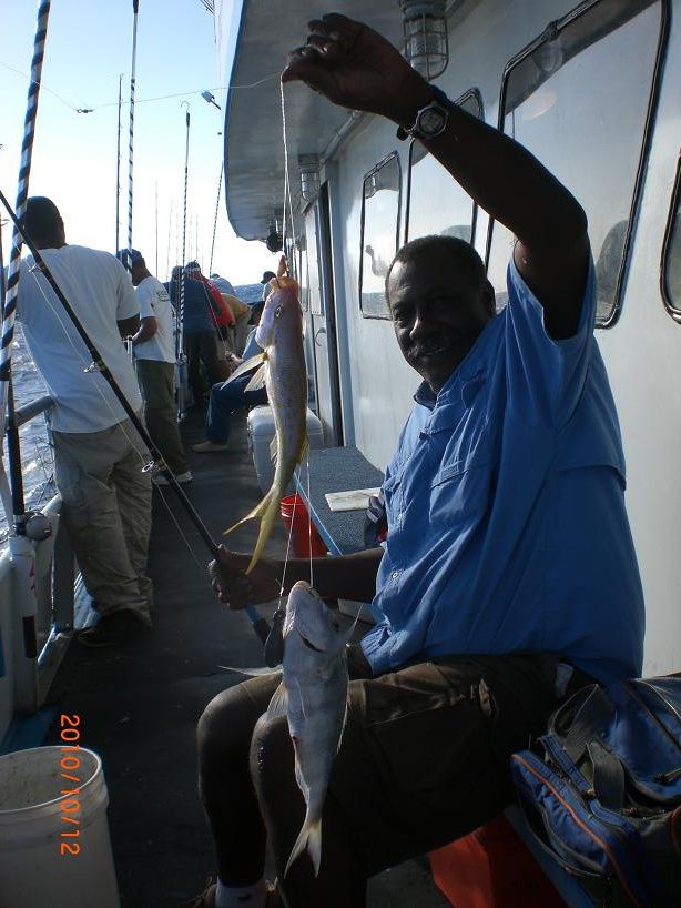 on the wrong side of the vessel with my line swept under the hull my bow buddy catches yellowtails,grunts and porgies as i futily try and catch muttons far away from the stern on the first day.The frustration built before I got a chance to join my buddies on the stern for some real fishing on the second day