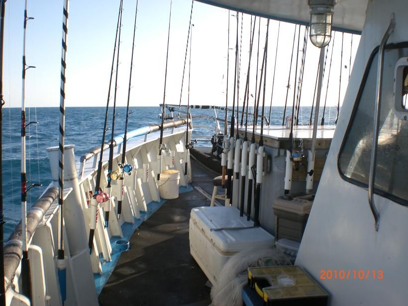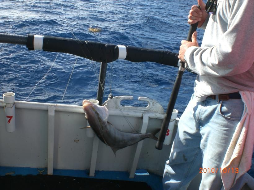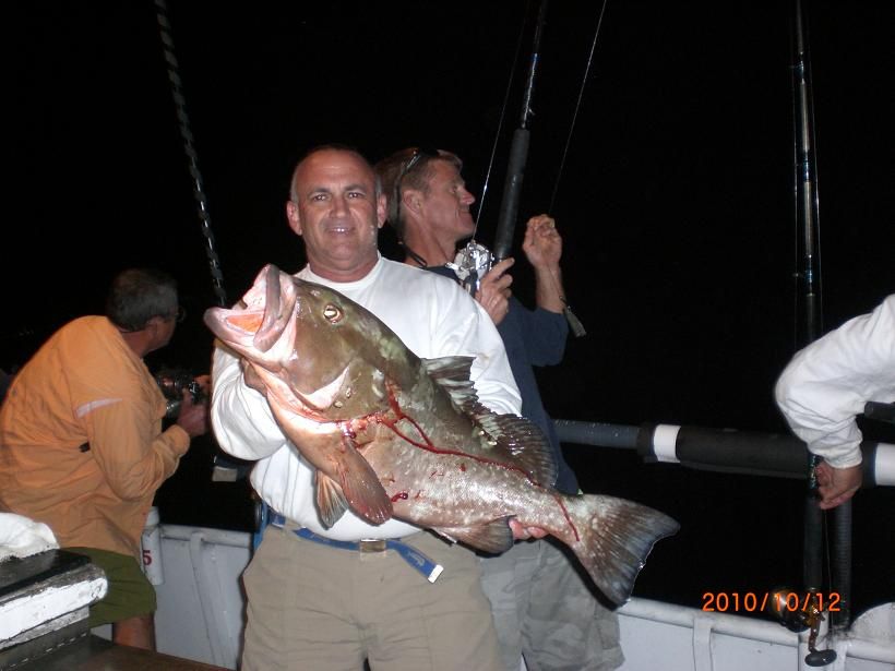 For me on the first day it became apparent that fishing the bow or mid section of the boat might have some advantages in calmer water but in these choppy conditions with the current ripping and the boat anchored in water deeper then 100 feet most of the day I was having a difficult time trying to keep a bait on the bottom ,in one spot,without rolling around(muttons are very easily spooked) and off the hull of the vessel.I took it like a man and made the best of it although it was difficult to sit back and catch yellowtail and and assorted smaller species while the opposite side of the boat and the stern were into the the big fish.
