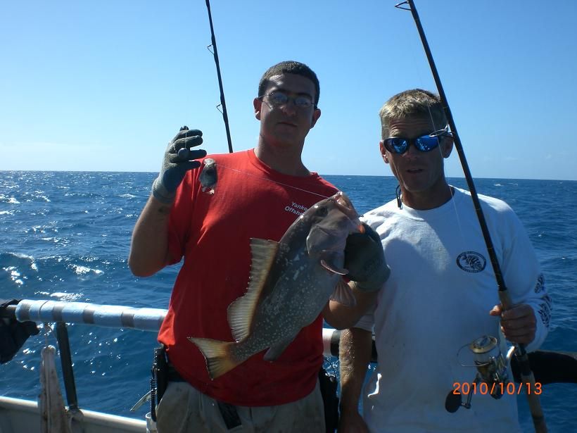 Dudley and mate Vinny pose with a smaller grouper