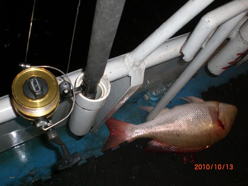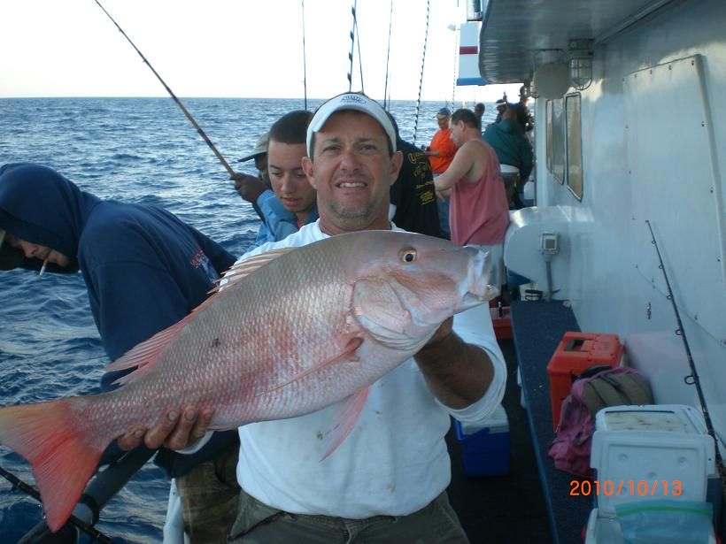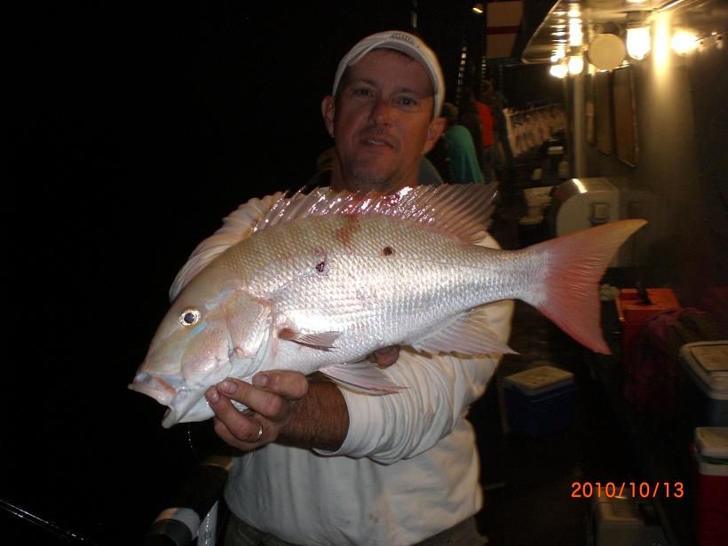 Vinny with one of many little pest that kept faking out the fisherman thinking it was a red one when in fact it was the man in the grey suit that was at work causing mayhem , tangling lines and causing friendly havok among sleepy fisho's