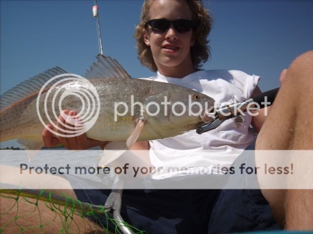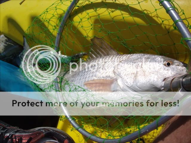 On wednesday I took my yak over to tampa to do some fishing at my aunt & uncles house. On wednesday I got a late start and ended up with a 26" red that weighed 5lbs and 1 ladyfish both on a mirrolure mirodine. The pic's arent the best since it's an 8ft yak and its the first time I've ever taken my camera out with me on it. With time I'll get better. Thursday, I fished all day trying new areas and paddled over 10 miles and couldn't catch anything. Only lost 2 bluefish that chopped a D.O.A. shrimp in half.
