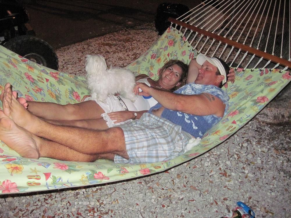 one heck of a way to end a perfect day ;on a hammock with my wife and my maltese "Azukita"