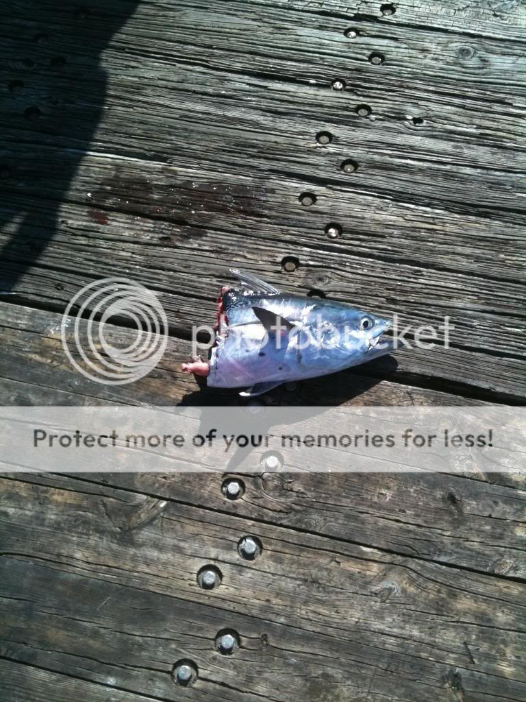 Bonito that cudas tore up, this is what happens when your wife is trying to get shark bait in for you.