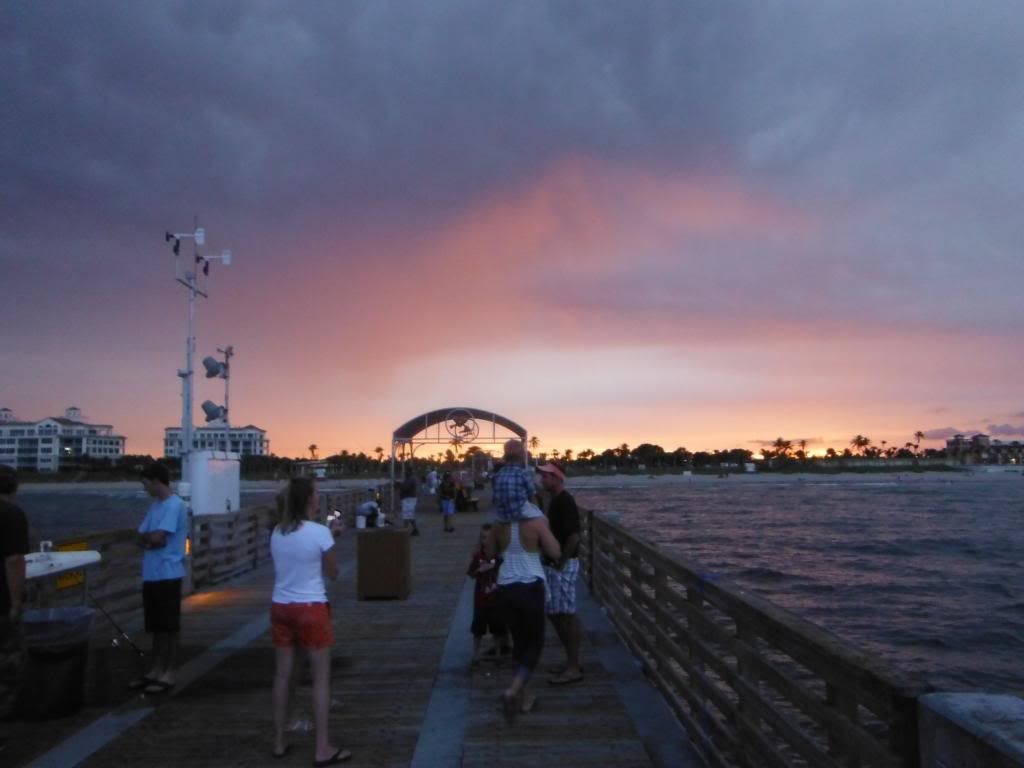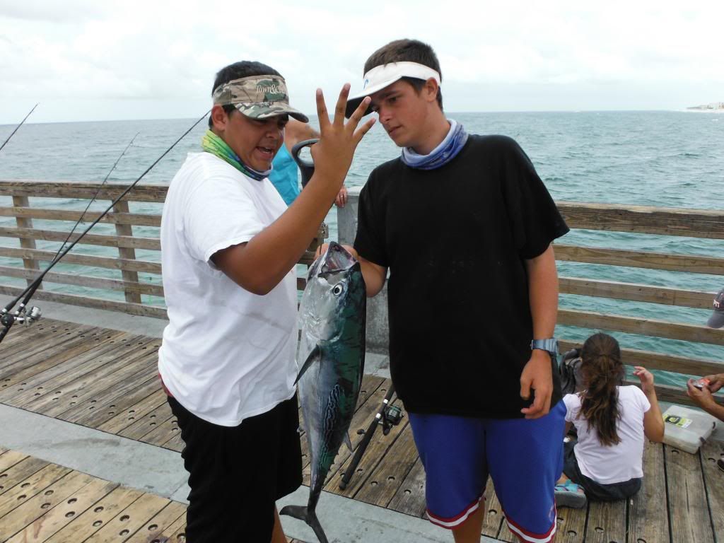 The kids here at Lake Worth throw Bonito gang signs while checking the weights of their fish.