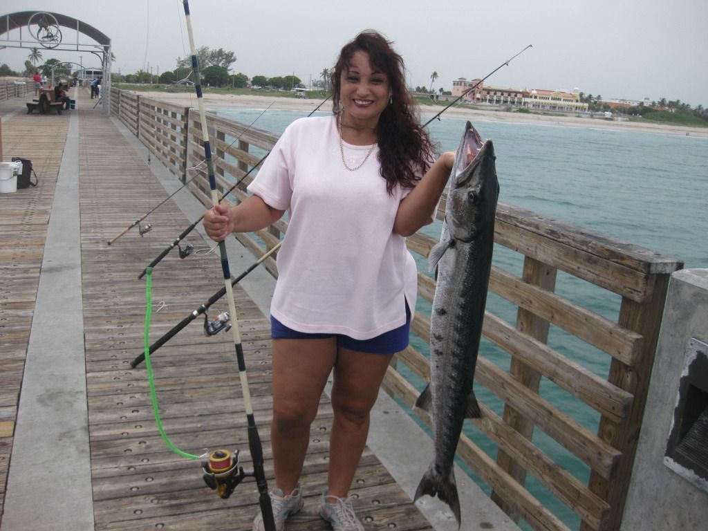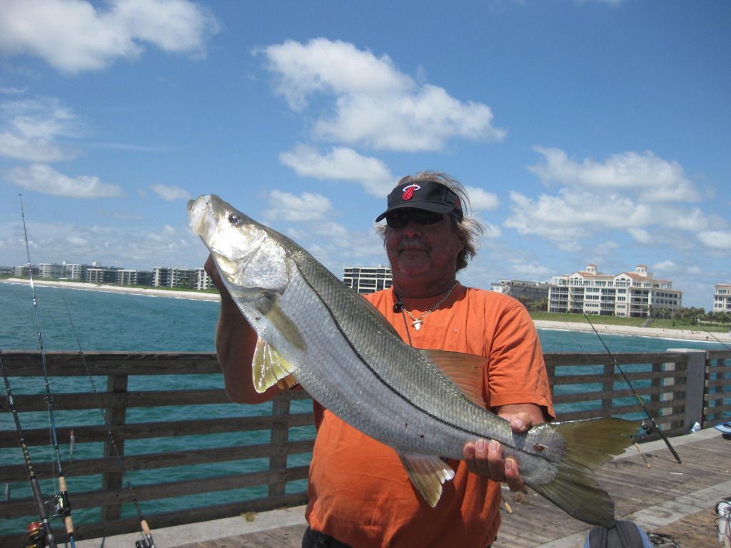 Some fish caugth at lake worth this month. Just to recap some fish seen and caught, 1 sail landed, 3 sighted, 1 jewfish hooked and lost, Eddy got a tiger on a ballooned bait, an 8ft tiger swam by the pier today. The jacks, bonitas, and kings started showing up, the snooks are biting.