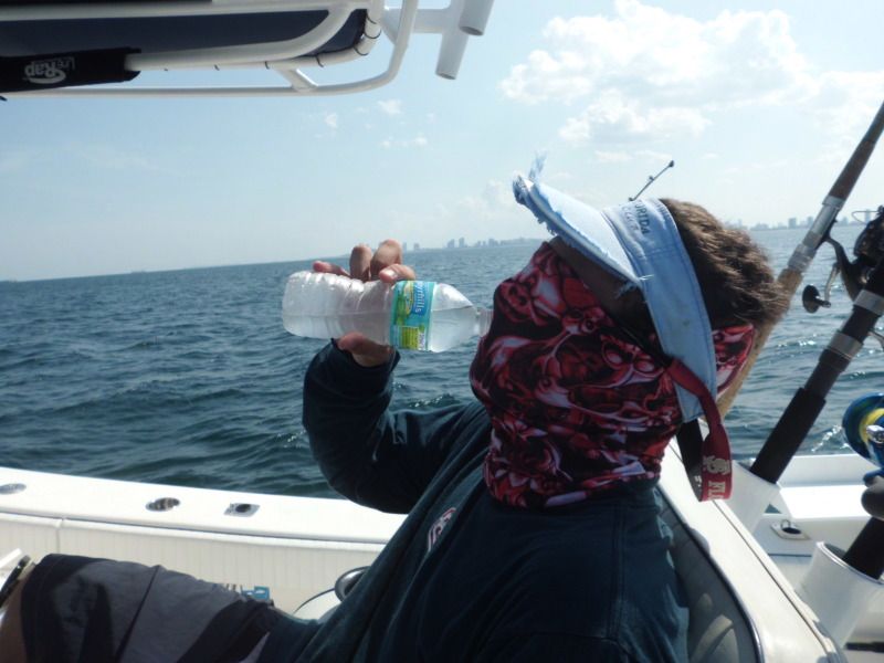 Got a message saying get ready for the boat. I said okay. We loaded up and searched the bay for bait, there wasn't too much but we managed a few livies. All the action came from the vertical jigs though.