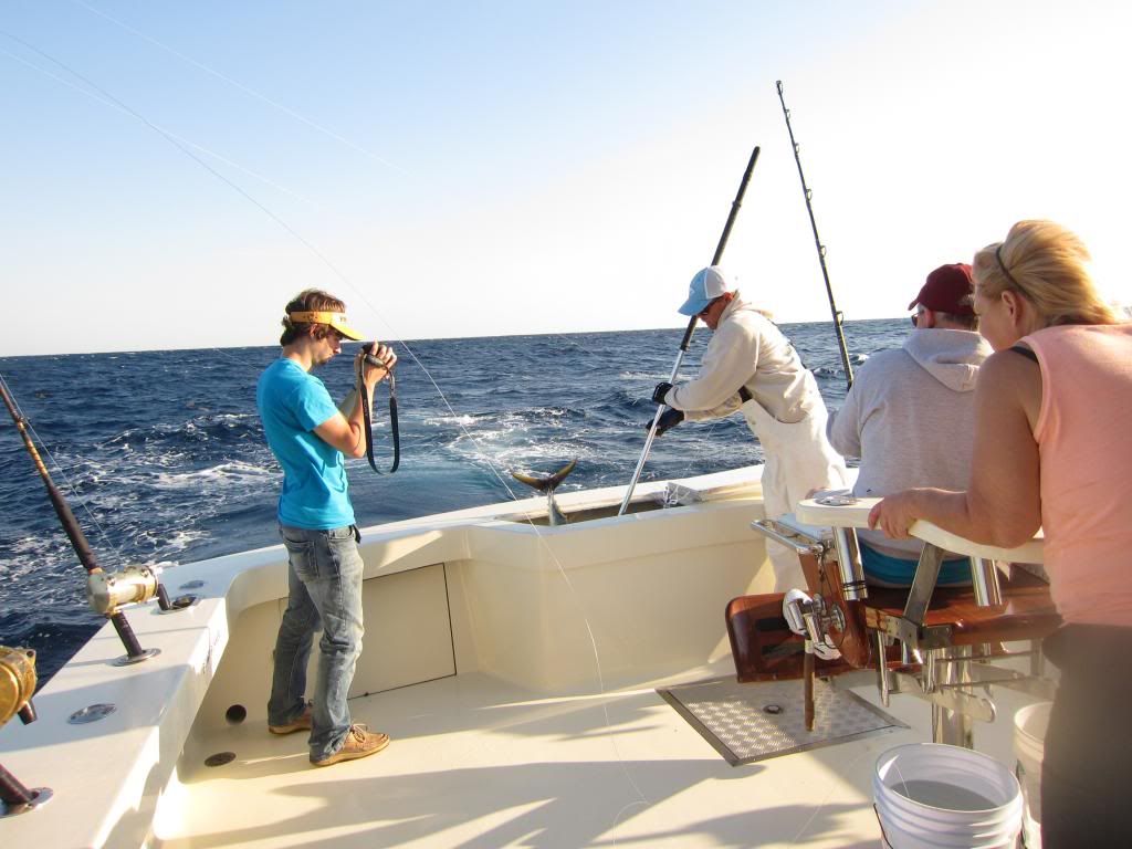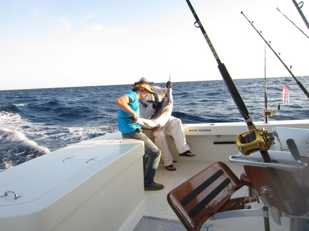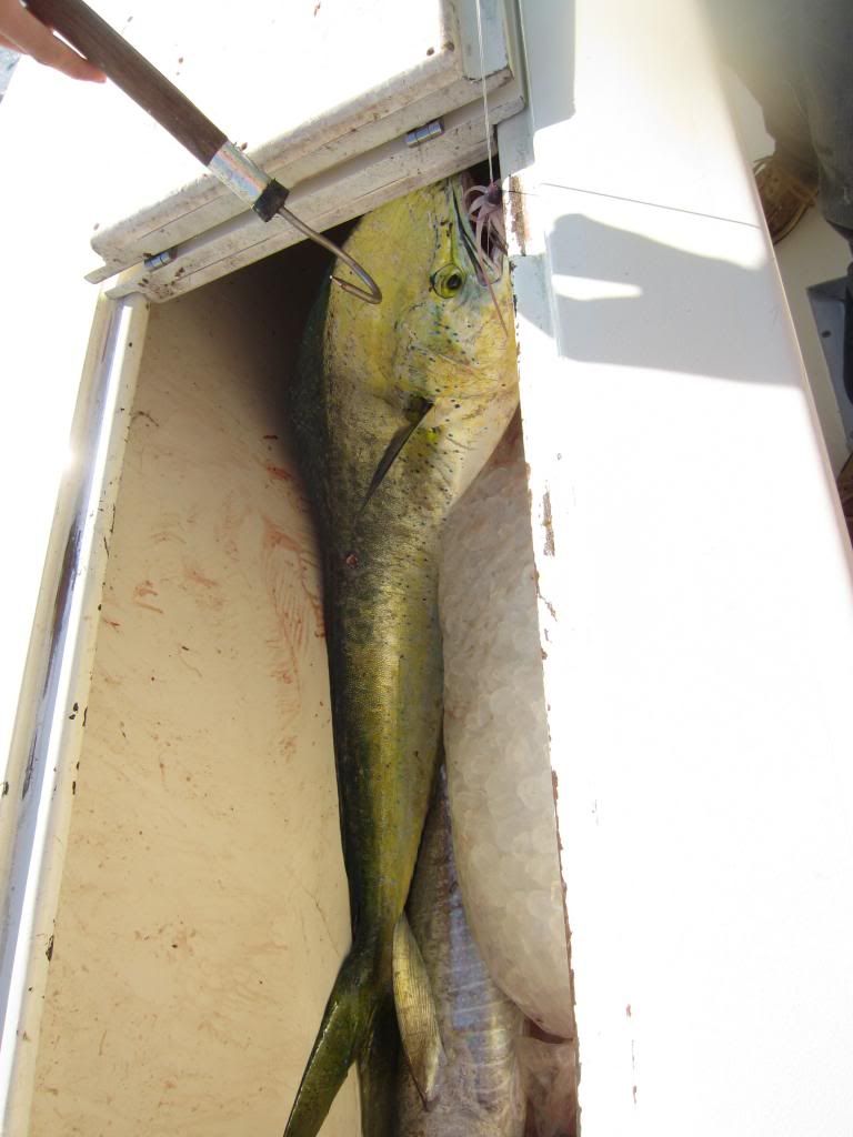 Went out on my buddies boat on tuesday May 20 and had good bays trip, not a great day but still ended up with a nice haul of fish. Ended the day with a juvenile Blue Marlin which kicked the day off, 6 yellowfin tuna, a blackfin tuna, a skipjack, and 7 gaffer dolphin. We lost a big tuna, close to 80lbs to a 11 - 12 foot scalloped hammer that ate the tuna in two bites. Cant wait for Will to come up in two weeks. We are going to go and crush them boats are limiting out on big yellowfin and are destorying the dolphin.