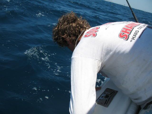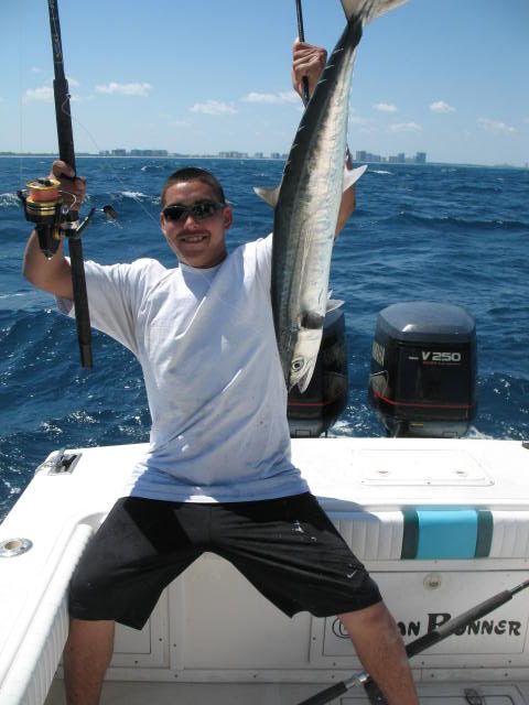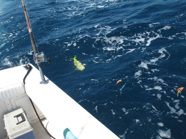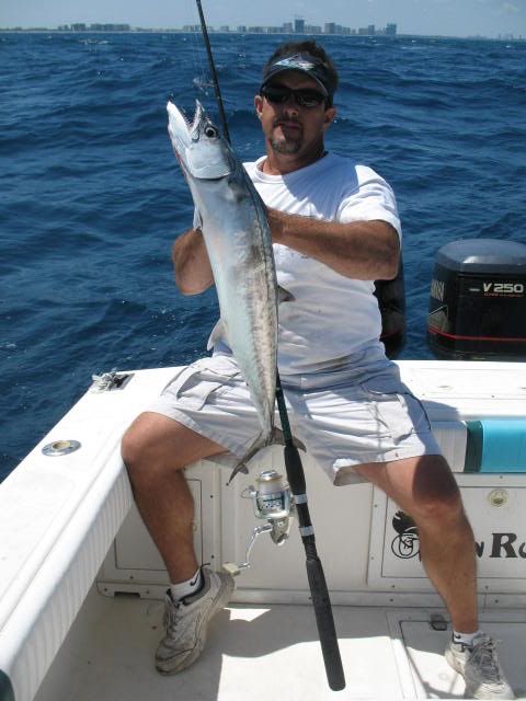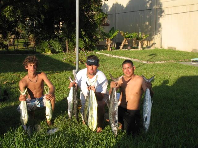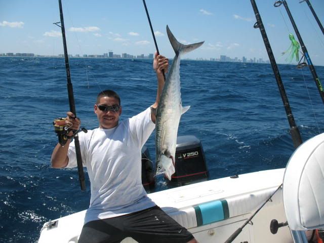 We went out of Haulover Inlet 10 am we got a late start after fishing the whole night with Jimmy Fuqua and Aaron Bunch.We were all beat but determined to make a day of it.We bought a livewell full of live pilchards and herring from Lester the baitman who anchors his goldline commercial fishing boat inside the cut.We trolled the spoon with wire line and a few other artificials way back in the wash /Our first luck came in the form of a nice sized dolphin going airborne on the flat line.We caught a few more fish on the troll and later moved in to 100 feet of water to anchor and chum with liveys.Today was one of those days when everything just clicks perfectly.Jimmy fished like a madmen and broke many personal record on this awesome day of fishing ,,,,Aaron on the other was seasick most of the day and providing inexpensive chum for the fishies.We'll be going out again soon but hopefully with a calmer water.