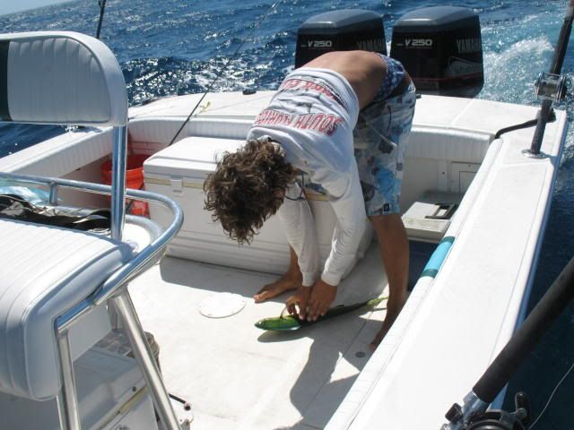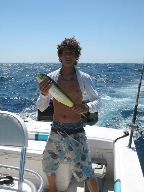 Aaron catching dolphin for his first time