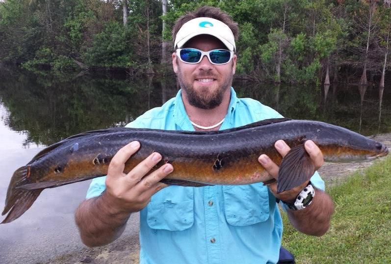 Got a big (7 LBS 10oz) snakehead on Sunday afternoon and then a bigger one (34", 8Lbs) on Monday after work. Gave them to my buddy at work. He grilled 'em up and they are gooood. The meat is similar to tilapia. White and flaky, little more firm than tilapia. Great for grill since it does not fall apart. I am going to smoke one up next time.