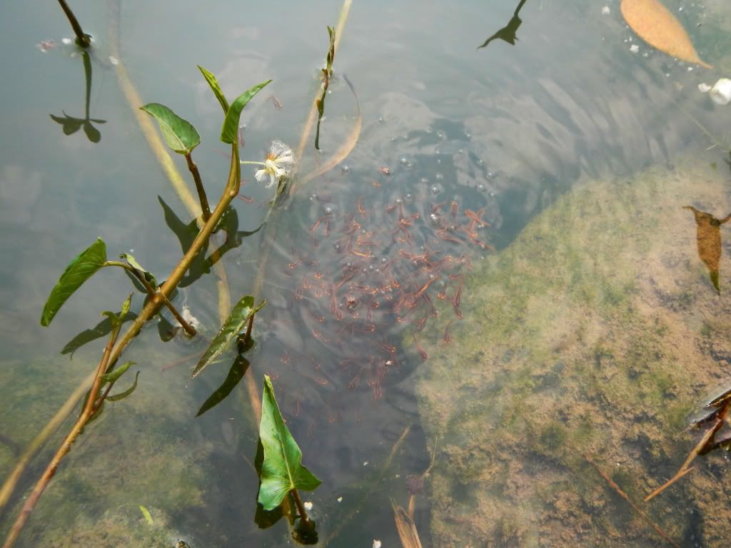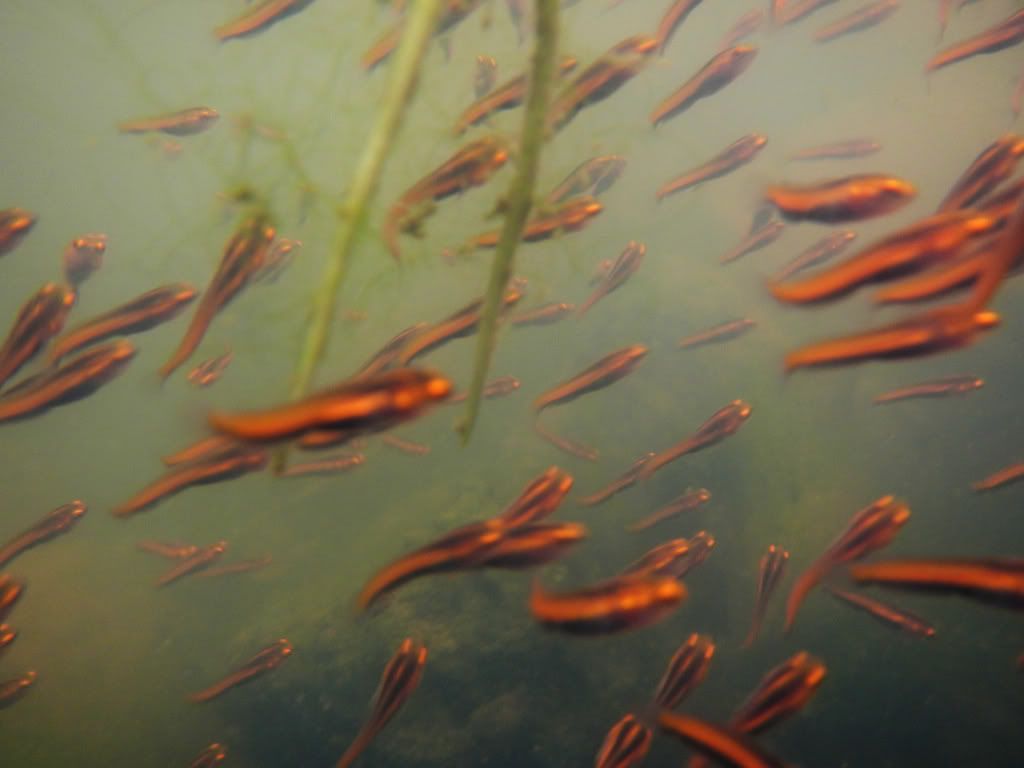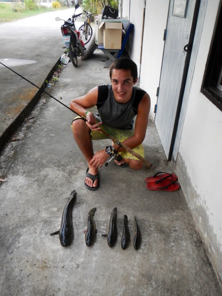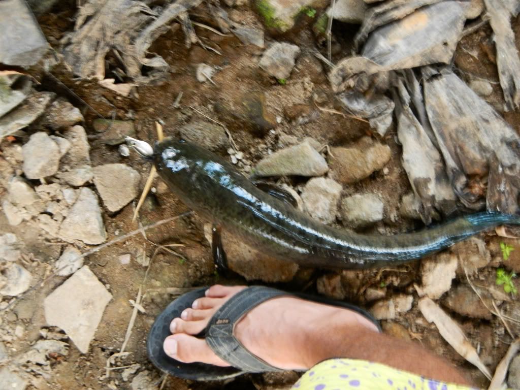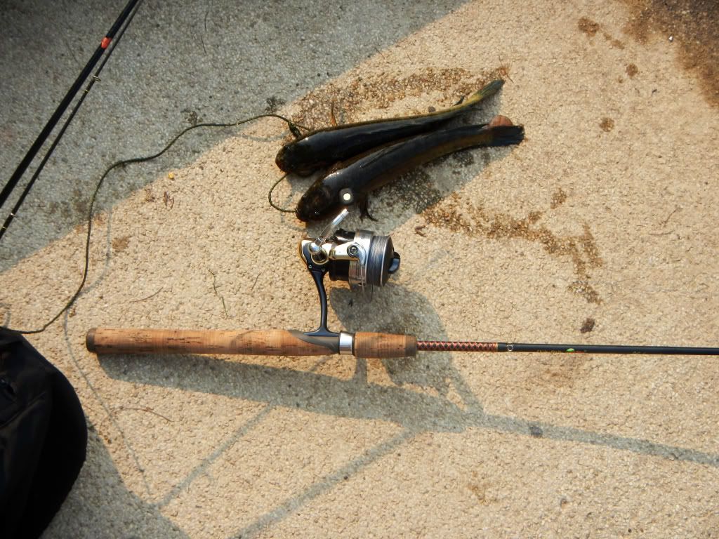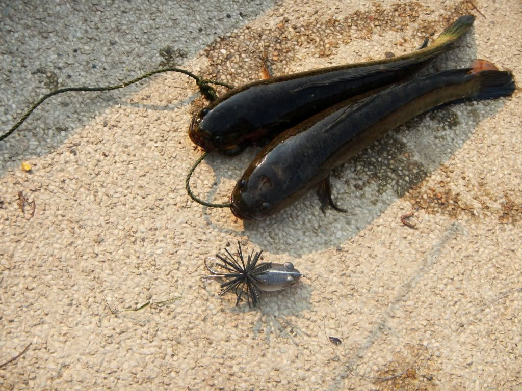 I think because the summer is ending (bad time of the year to fish) and we had the first rain in two months yesterday, but not enough to raise the water combined with the hacking of the snakehead fry to make them more aggressive made it happen today.