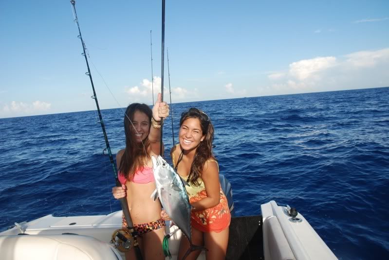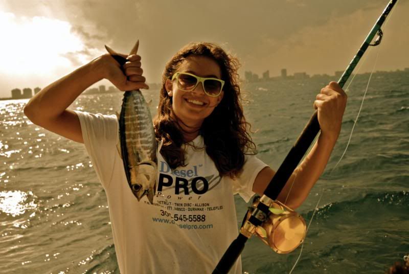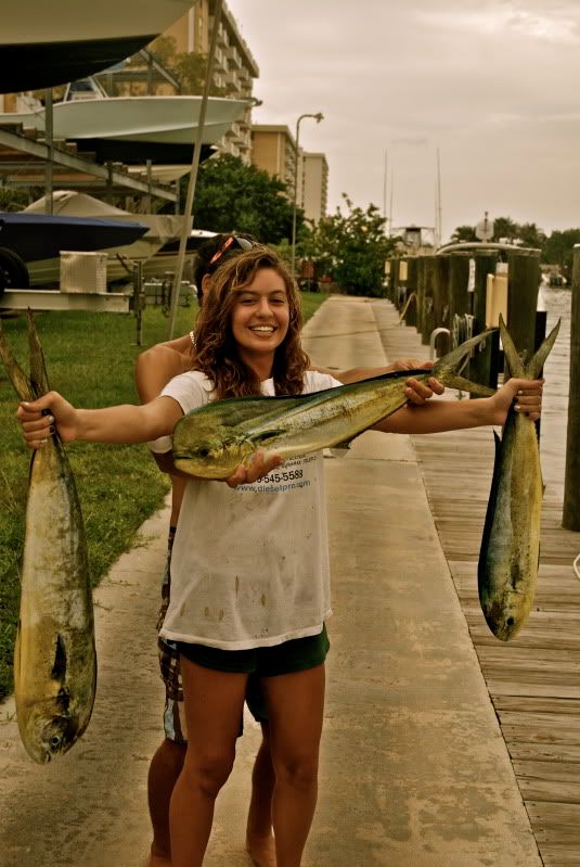 My little sis with her first dolphin caught on 15 lb test monofilament fishing line