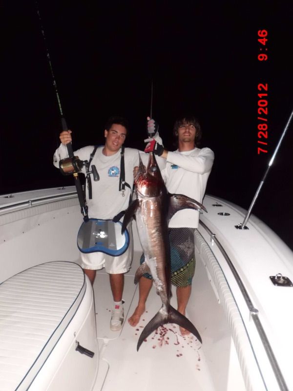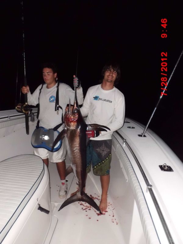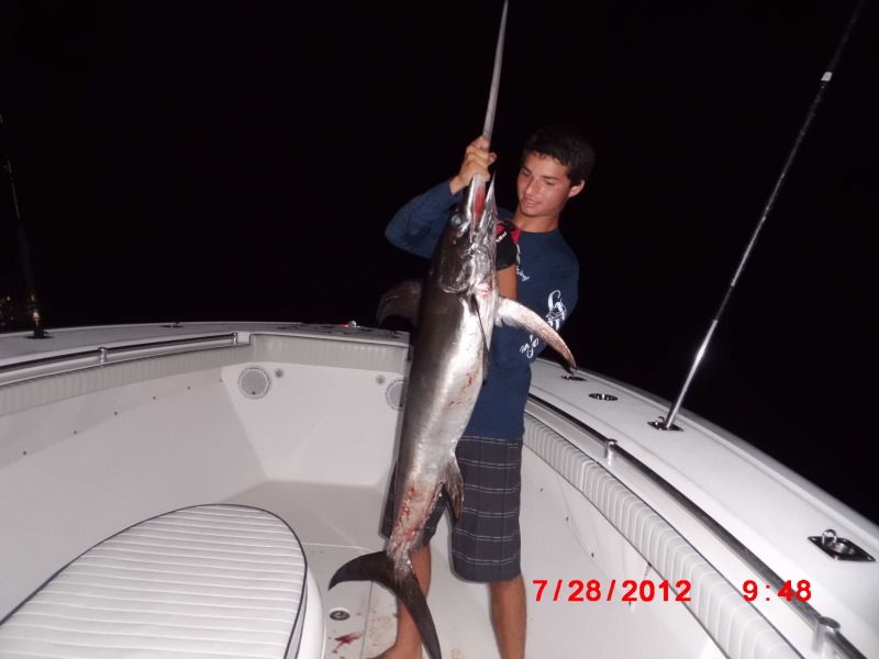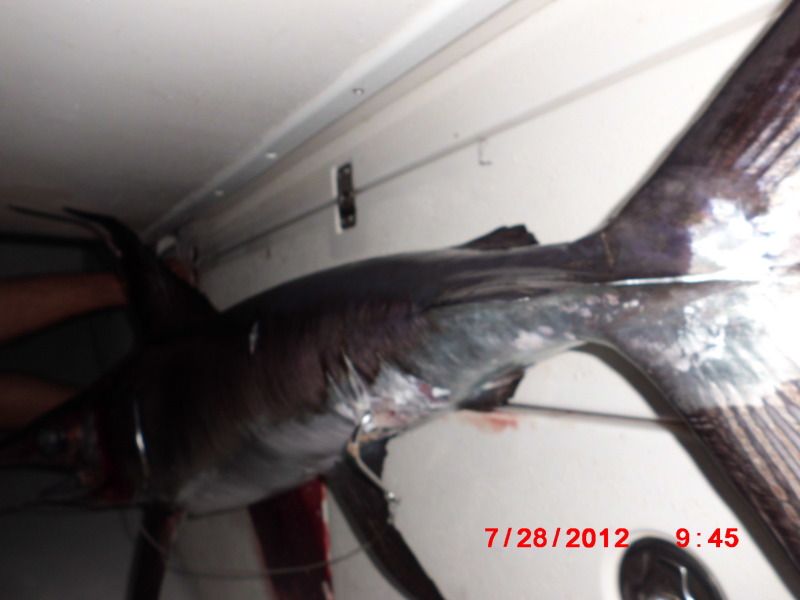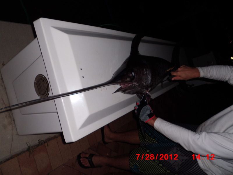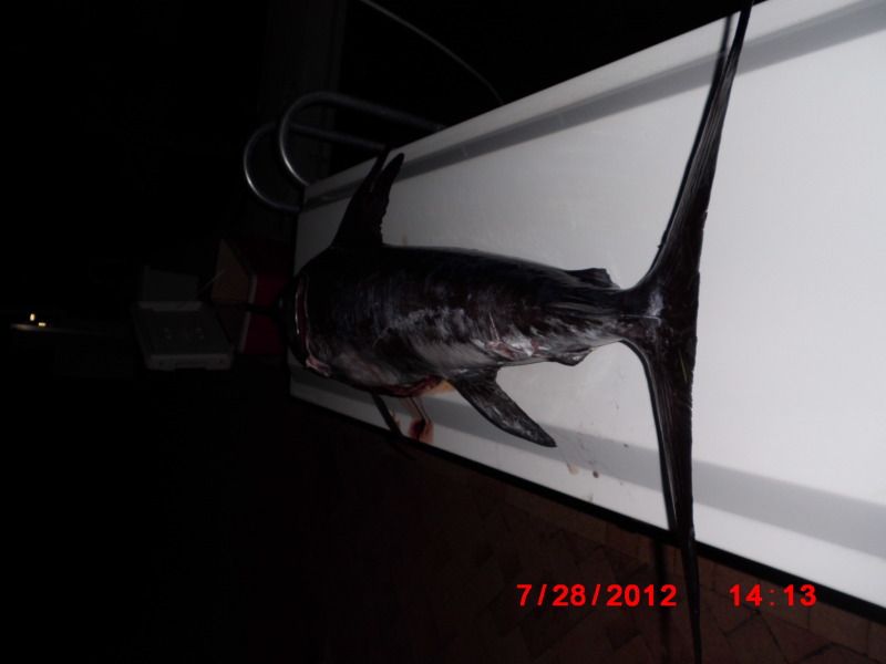 We still managed as I pulled up a real frisky foul hooked sword that made off with about 400 yards before everyone could reel up and chase the fish.