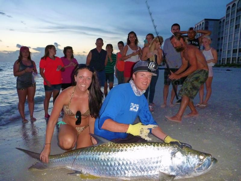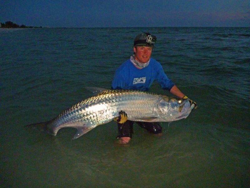 I finally managed to get out and soak some baits for sharks and tarpon after almost a month. It's been a strange year of fishing with very little bait inshore and not much to catch from the beach but snook it seems. I decided to hit the sand in the late afternoon and set up one rod for poon and a couple for shark but wasn't planning on staying too long. The day didn't start out so well because as I was running my second line out some punks burned my line on the 12/0 causing me to lose 200 yards of line. The only reason I can think why they would do this is because I setup my rod about 15 yards from them. I looked around for them for a bit, but they had taken off. A nice gentleman helped me retrieve the cut line and get my rig and bait back which was somewhat of a relief. I was livid at the time but decided karma would take care of those kids and got back to fishing. My luck would soon change a couple hours later with my first nice poon of the year!