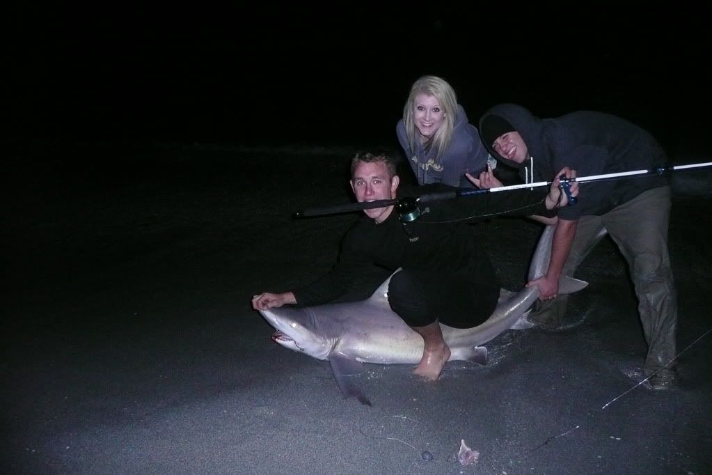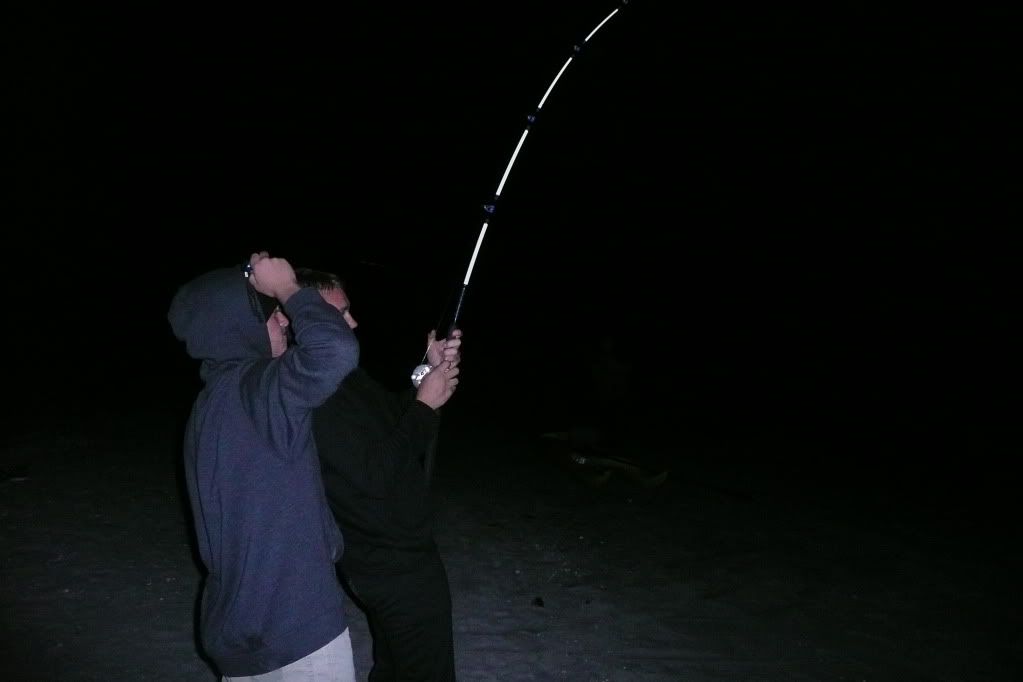 Lats year I went out armed with my 9/0 and 4/0, when I got to the beach my 9/0 was having drag problems so I had to use the 4/0 rigged with a chunk of ray wing. All of a sudden it got BLASTED, almost spooled on the first two initial runs. Then about 40 minutes in my reel just started falling apart. The rod brace came apart and shot all over the beach. Then the worst case scenario my reel handle stated to wobble and then BAM reel handle came completely off. Quickly my buddy grabs a zip tie and runs it through the hole where the handle was and then I had to reel this thing in with a zip tie as a handle while it ripped my had and fingers to shreds. Then land this 9.7 lemon!!!! 4/0 with 40/lbs class line with 100 yards of braid backing.