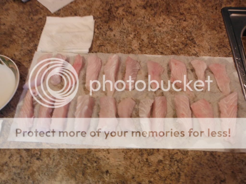 Then take your snook filet and cut it into fingers like this.