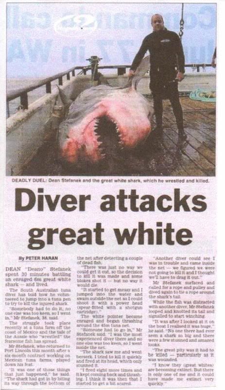 Diver attacks and kills 18 foot Great White Shark