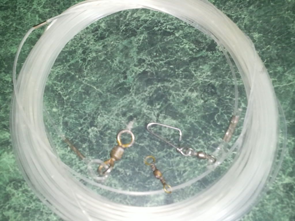 my leaders are around 30 foot long 10 foot of 480 wire and 20 feet of 400lb mono. from the wire to mono swivel i have a snap swivel that can slide around 5 feet or so on that snap swivel i snap a anchor to i have a crimp stopping the snap from going to far. then i have just a 3oz egg sinker above the crimp that can slide all the way up to my main line. i only use 1 single j hook or 2 j hooks depending on the bait. but if its a 14 inch bait i will thread the j hook through the mouth and out the gills then thread through the side of the body and have it come out the side. i set my drag really soft if any drag let them run a little 30 to 50 seconds then either lay down the star or put it in gear and set up. i have missed any sharks yet like that.