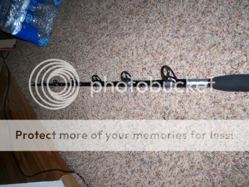 Specs are: 5' 6" 130 class Calstar trolling blank. Ameri tek gimble, slick butt, reel seat. 16" hypalon foregrip. Dragon scale wrap on the bottom (thanks to the buys at bloodydecks for that idea). Pac Bay SiC guides with an Ameri tek titanium tip. It turned out alot better than i thought it would.