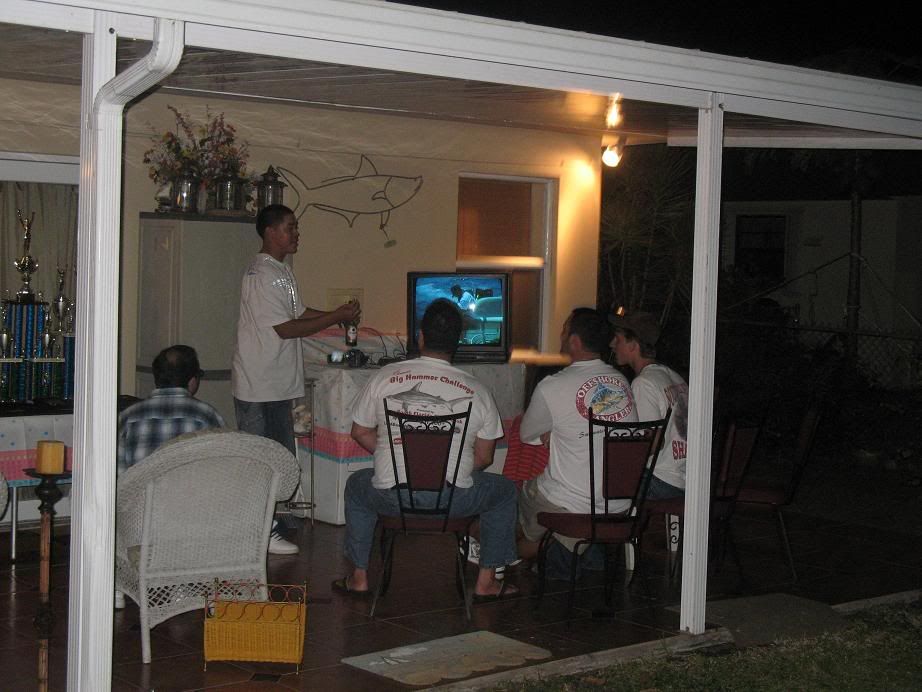 We had a great time i hope every one that missed this event can make it out next year because it is the party of the year.The food was excellent and plentiful ,old friends, shark fisherman from around the state and a good time was had by all.This party i proved to myself that i can get behind a microphone and talk from the heart and present the winners with emotion and poise.It was quite a revelation how easy the words flow when i close my eyes and let my heart do the talking.Great Party Thanks to everyone that came out and helped make it a success.This coming year 2009 promises to be a fantastic year for the shark club and land-based shark fishing in general and we hope that all fisherman interested in catching sharks will join us and become a member in the oldest and only still active shark club left in Florida.Remember this year there is $1500 up for grabs going to the Triple crown winner who catches the biggest hammerhead,biggest tiger shark and biggest Bull shark of the year if no one person catches all three the prize is divided in three $500 prizes.Just an added incentive for any one still undecided on joining the club.Have a safe ,healthy and properous new year everyone.