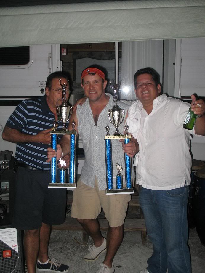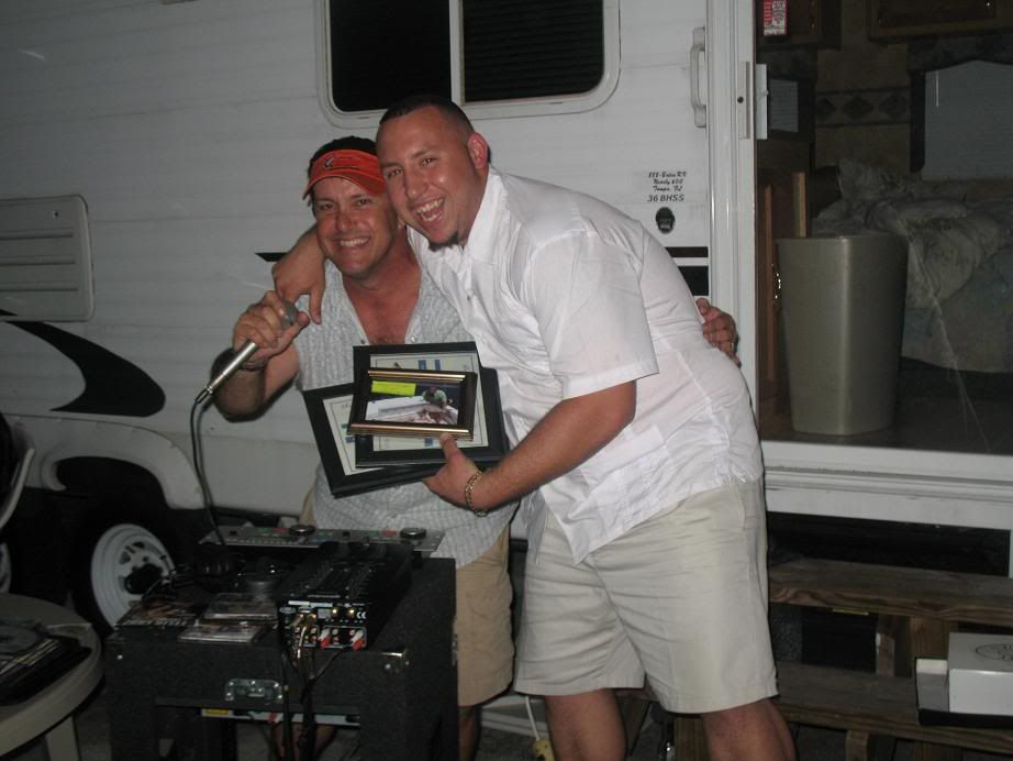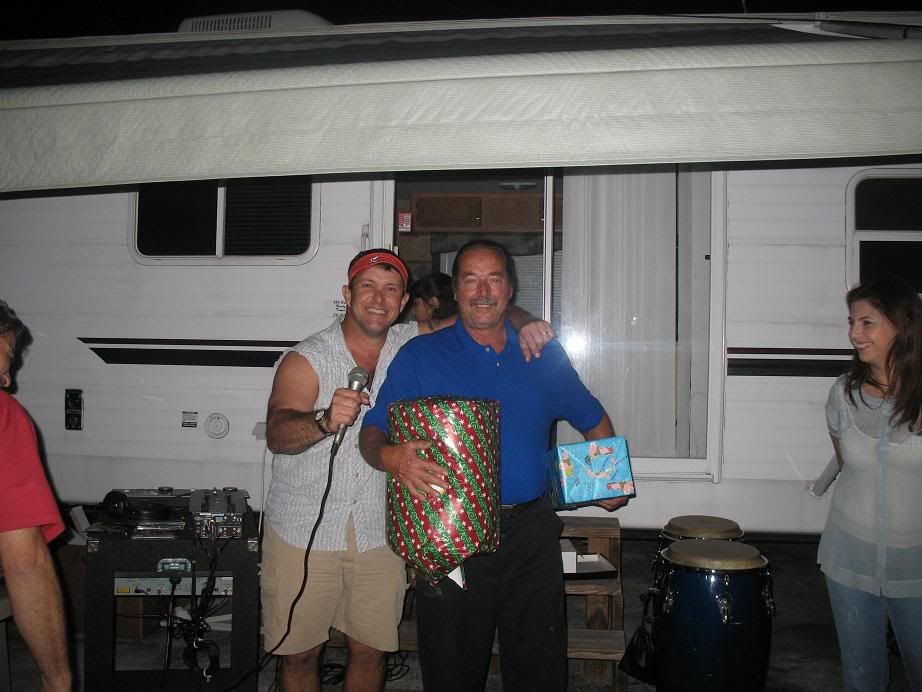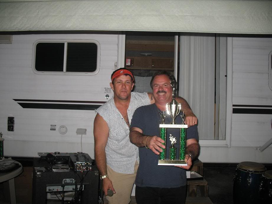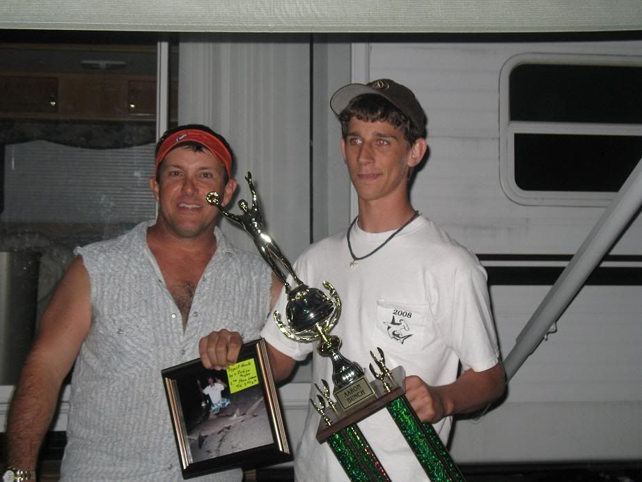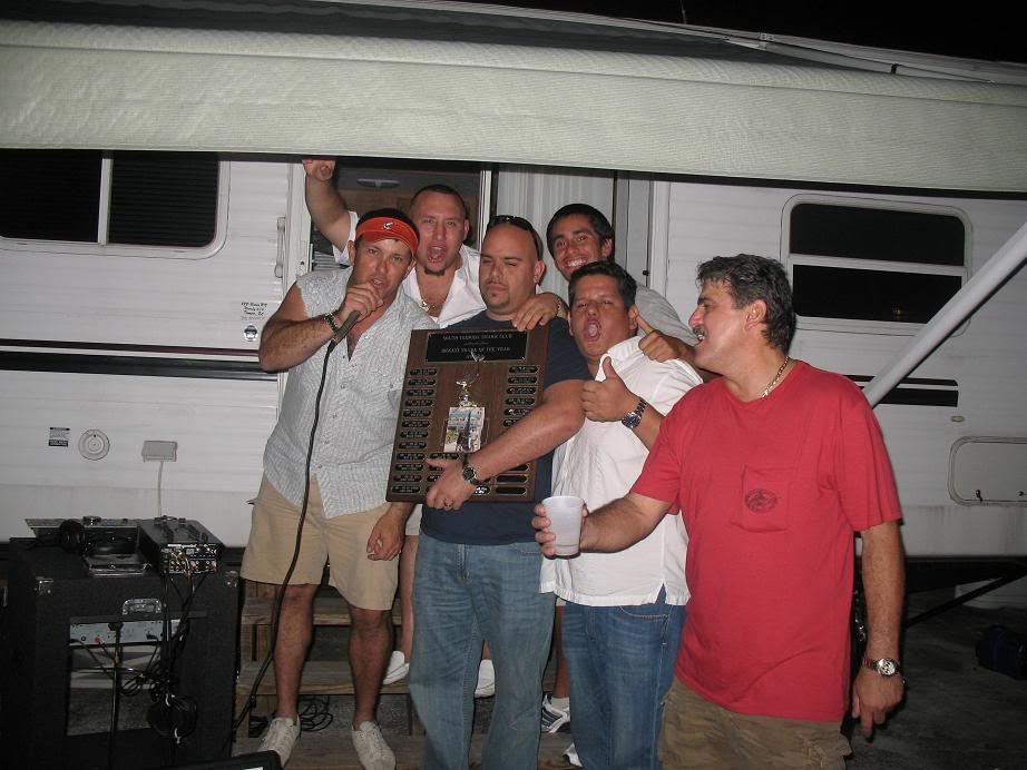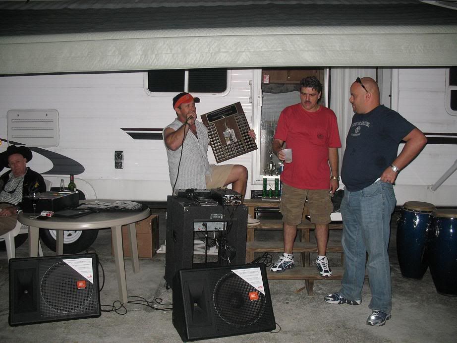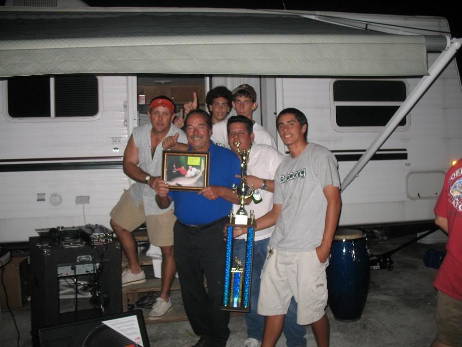Jimbo recieving his trophy for most sharks caught during the year and 2nd place biggest Lemon shark of the year-tied with Aaron Bunch 9 ft 2 inches.