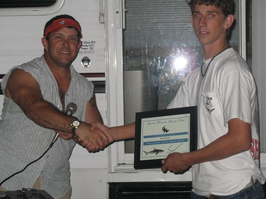 Junior Angler of the year Award, and tied for 2nd place biggest Lemon shark with a 9 ft 2 inch specimen went to Aaron Bunch of Bradenton Beach Florida