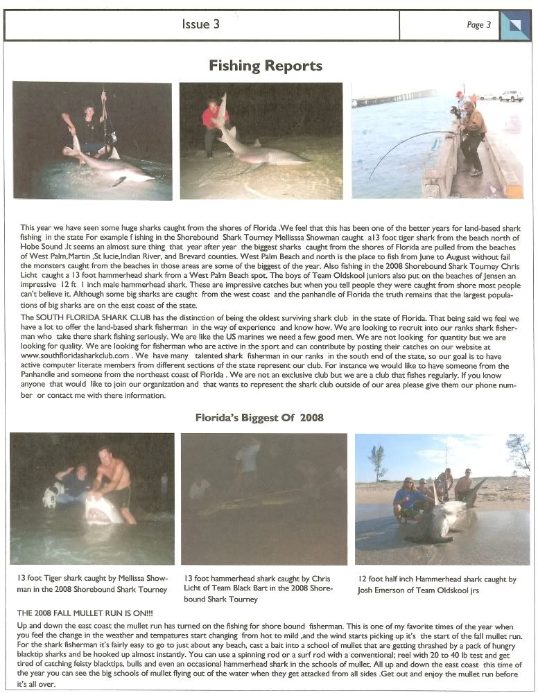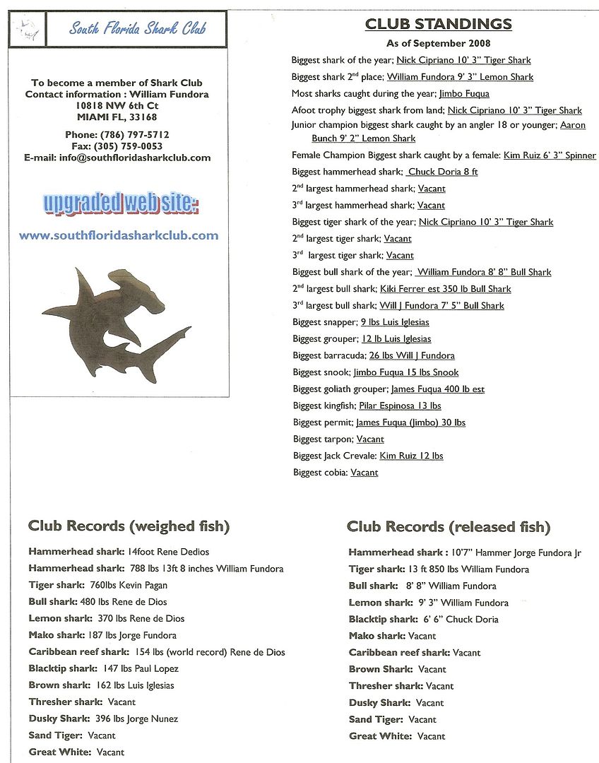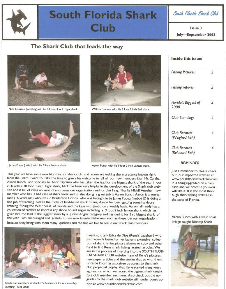 Here is our latest SOUTH FLORIDA SHARK CLUB newsletter sent out in the mail recently to our members.