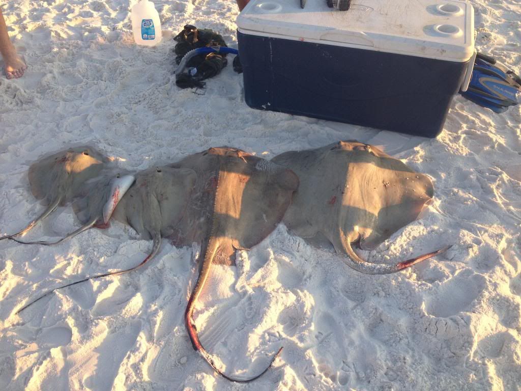 i've recently taken up spear fishing for rays and its quite addicting. although im not the best at it and bounced my hawaiian sling off the backs of 6 rays my first time out i have got some decent ones and feel i've been getting more sharks due to a constant supply of fresh bait and being able to slap on a 5-10lb chunk of meat and not worry about having any reserve.