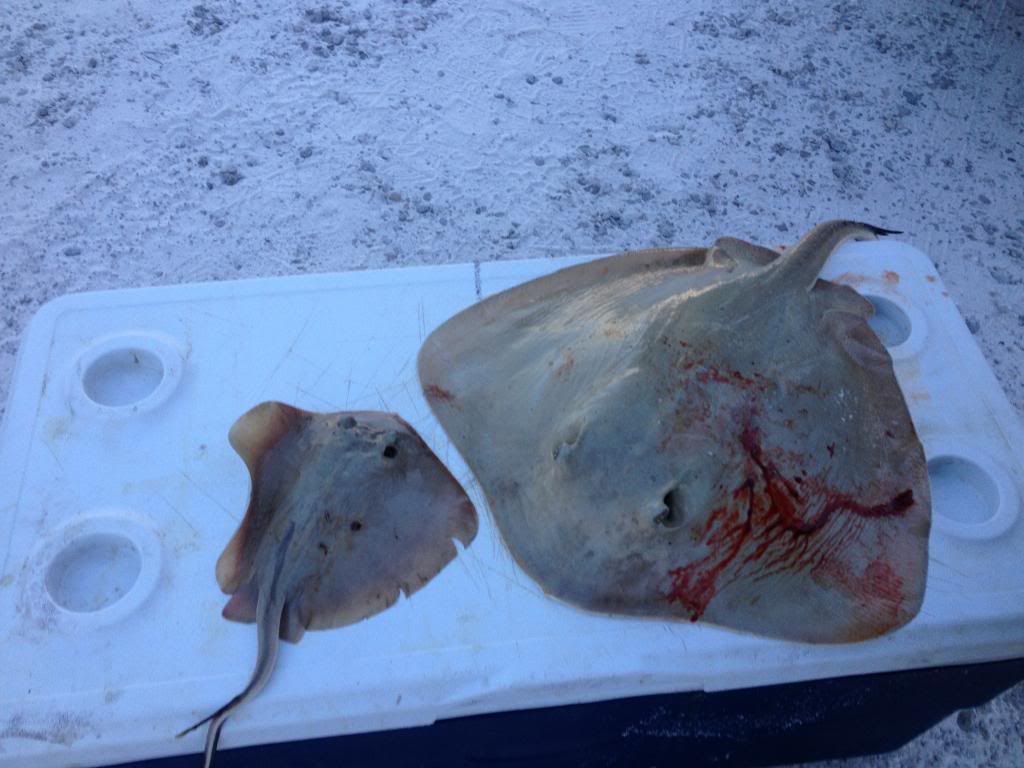 man i hope so. i had an 8-10lber out monday night and it got picked up. i had the hook though the nose and the shark picked it up from the rear, missed the hook by only 2 inches. haha. the bite radius was almost as wide as the ray, smaller teeth up front and it had two very large, half moon puncture marks where the base of the jaw would be. still trying to figure that one out.