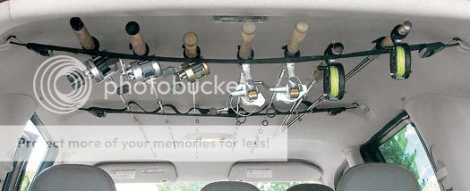 My brother had something like that in his van. It was like a bungy cord stretchy like material. He had a couple light spinning setups and two Tarpon rods w/ 4/0's on them. It never fell but sagged and pissed me off all the time, rods all in my face and weights swaying in my face