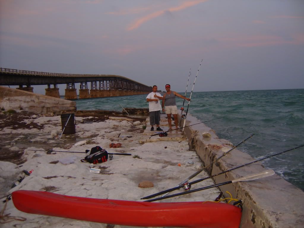 Bridge fishing the keys means having to walk a huge shark from point of capture to the end seawall to get accurate measurements and do a correct release.Sometimes the walk can be more then a mile long with the possibility of having the current switch and the shark being dragged under the bridge and cut off by the tremendous currents that prevail there,Just the thought of the long ardousd walk keeps most bridge shark fisherman fishing close to the ends of the bridges.Rene de Dios had a favorite spot "between 9 and 10" out a half mile from the end on the north side of the Long Key bridge but like the name implies it was out between the ninth and tenth electric poles -a very long way to walk a mad fighting shark in the strong current.