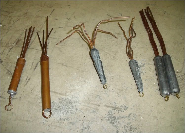 I use the mouse trap shark leader except I attach the spider weight on a snap swivel...the snap swivel is then allowed to slide on the mono shock leader for about 10 feet. Basically this gives the shark more distance to run with your bait without feeling any pressure. Also, I bought spider weights from a guy on the extremecoast forums..You can certainly pour your own but for only $3.50 per weight I rather just buy them and not go through the hassle of gathering materials and making it. Plus you don't rig them as a breakaway so they last forever (as long as you don't get cut off).