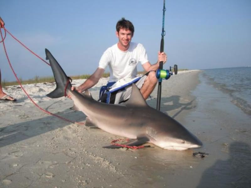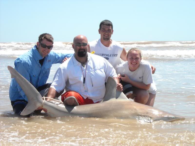 That sandbar measured 6'8" but was by far the heaviest one we got last year. And yes, than small pic is the hammer. It was my luck that we used a friends camera and the picture did not come out right. If you look close you can see how long the tail is, and his head is still under the water in that pic.