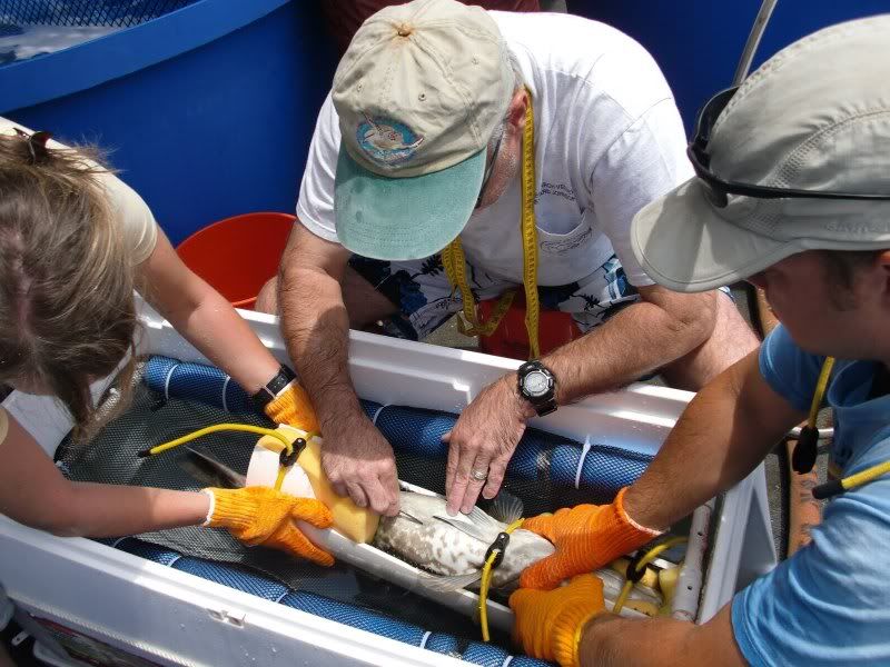 below are some ppl from noaa putting an acoustic tag in a gag grouper off of georgia.