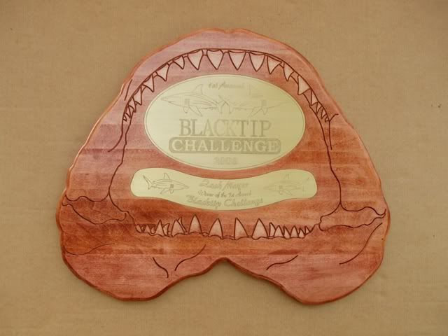 The Custom Trophies that the first place winners will be receiving for Largest Shark, Largest Blacktip, and Most Sharks Caught are indeed custom. The winning anglers will be able to choose ANY design they want for their trophy, as long as fits within a certain size. We can even take a picture of a shark that you may catch in the tournament and engrave it into the trophy.