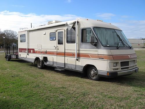 Well we did it,after so many years of thinking about it we finnally bought the RV we always wanted for traveling to new shark fishing grounds with the shark club and friends .This new shark club toy is the reason I have not been on the website for a week and a half we've been working our tails off to refurbish the 1988 , 32 foot Fleetwood Southwind Rv we bought in Tampa recently.We got a great buy on a classic that was just yearning for some much needed tlc .This low miles fiberglass bodied Rv has twin beds, a sleeper sofa,shower ,microwave,stove,generator,widescreen flat TV,new carpet and a fresh wax job and a brand new awning.The only downside is she has gas guzzling Chevy 454 engine as a powerplant.The RV will be Homebase and the place to register for the March 20-22 Rene Memorial participants and will be home for many upcoming shark fishing expeditions in 2009.Come on out and spend some time with us fish,compete if you like or join us for some cold drinks and bar B q Friday or Saturday afternoon.