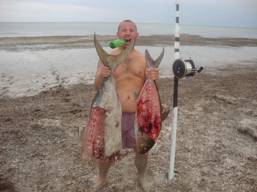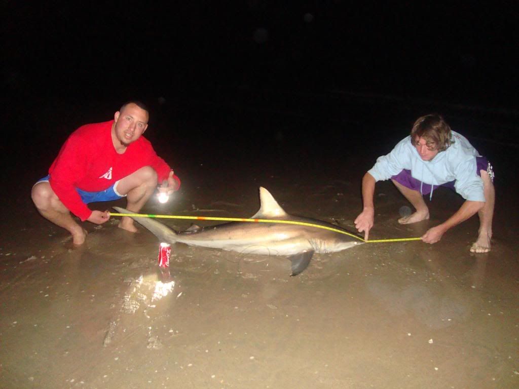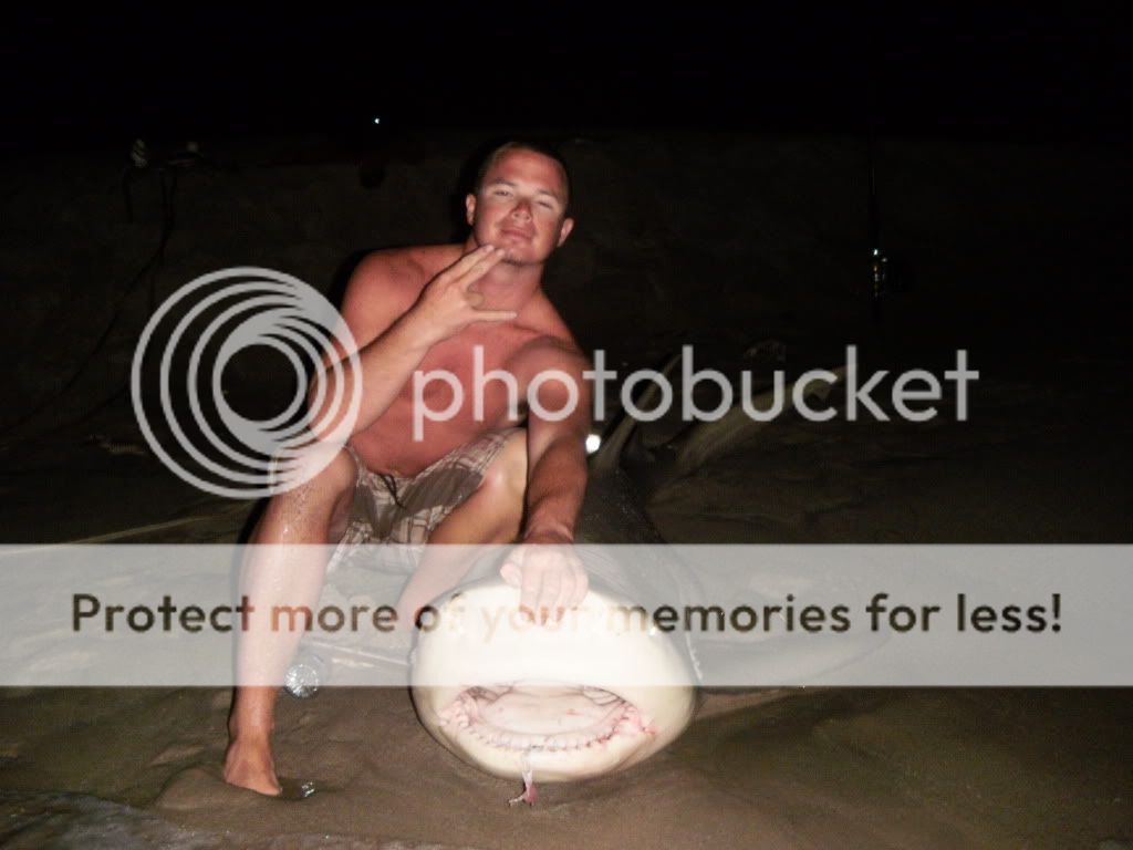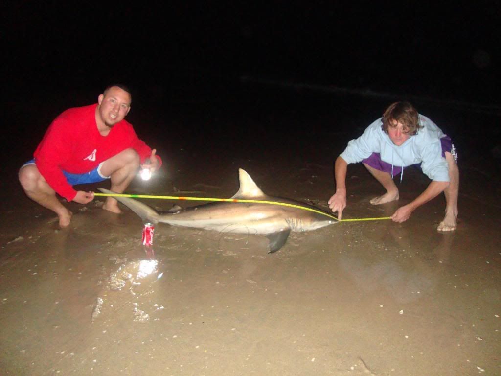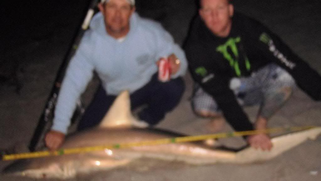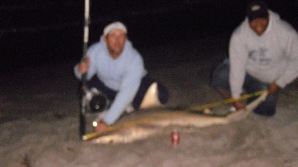 Team Hard Hookers hit both coasts hard.. catching around 10 blacktips (only eight photos), met some cool people.. met up with Josh Jorgensen - he helped us out with the takin photos among other things (thanks Josh).. the old man had on a big hammer (estimated 9 footer) that was lost in the surf.. we were heartbroken.. cought bunch of tippers throughout on baits intended for bigger fish (oh well) and one big nasty bull by james bois.. here they are: good luck to all
