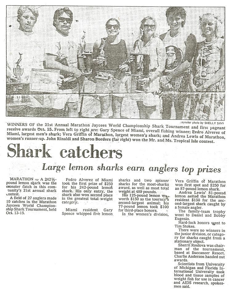 the article that goes with the above pictures Marathon Jaycees Shark Tournament-1988