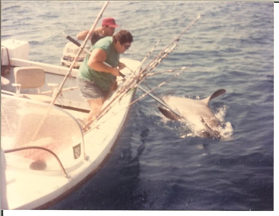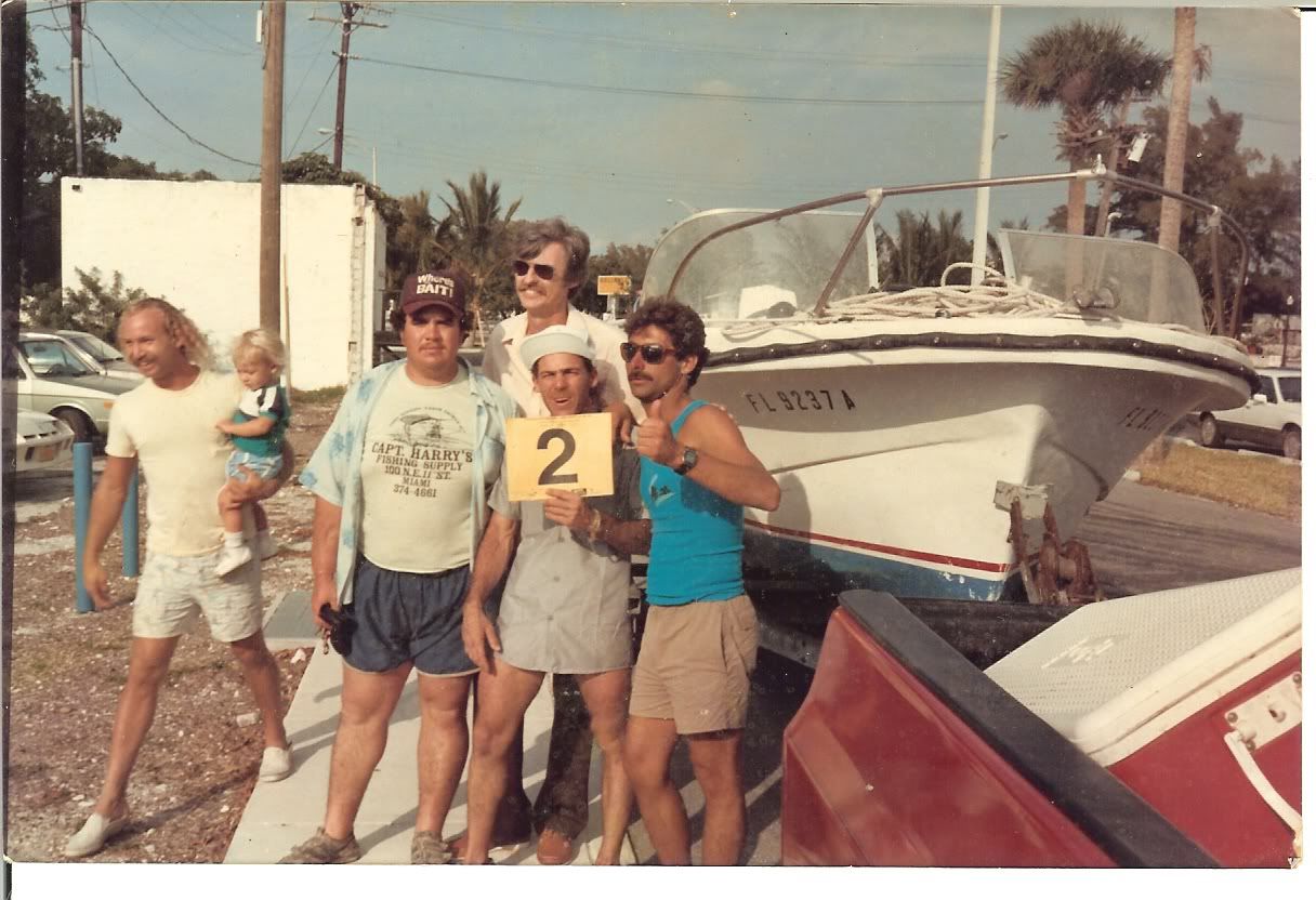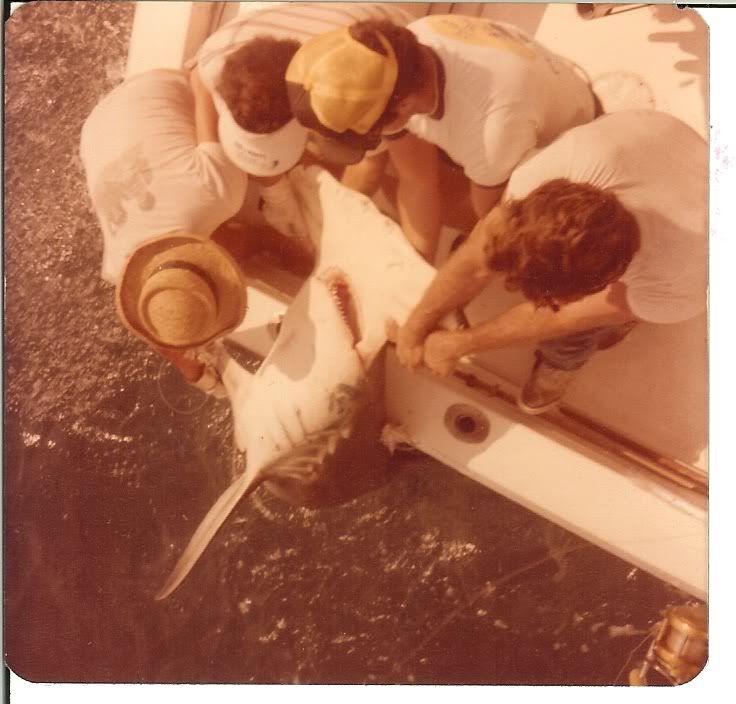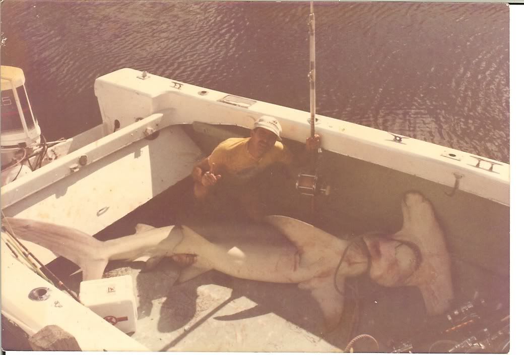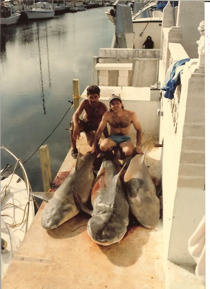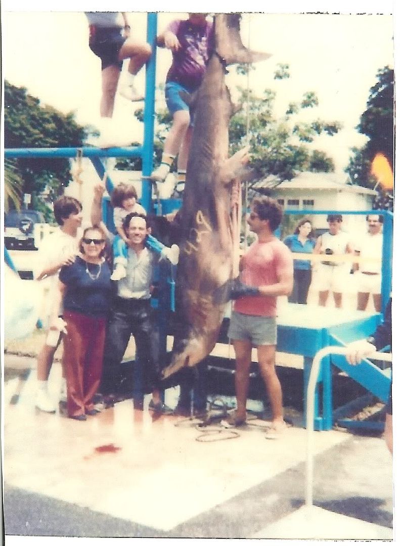 South Florida Shark Club members swept in the awards but no one like Rene de Dios with first place Biggest shark and most weight in total aggregate weight.Also representing the SFSC at that time Luis Iglesias,Paul Lopez,Danny Lopez,and from North Miami Beach Capt Ron Scahatmans son Jeff in the Junior division.Notice the sharks stacked up on the deck of Rene's battle ax open boat.