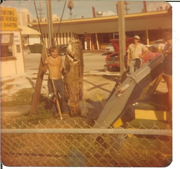 the results of our shark fishing at Bahia Honda bridge-notice the open trunk on my Grand Torino Gt -we hauled the 187 lb jewfish from the keys to North Maimi Beach to weigh the fish at the Castaways dock.Lovely smell in my car for a few months afterwards