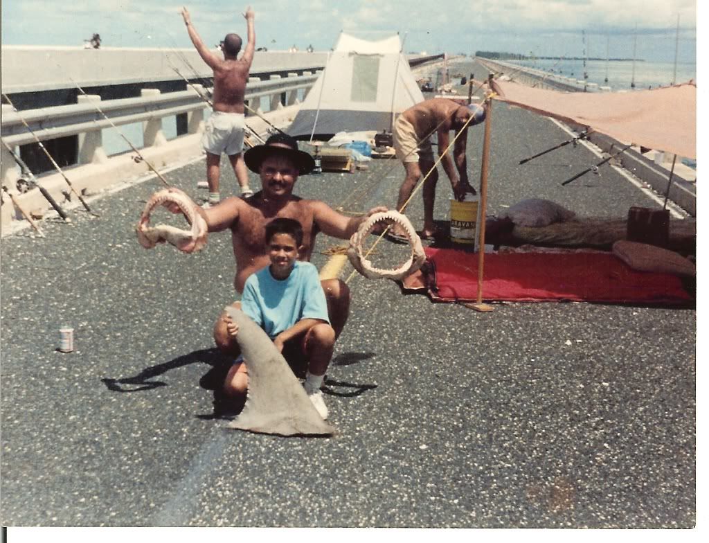 Long key bridge has long been established as one of the best places to hook huge sharks in the Florida keys.Rene de Dios knew it ;he fished that bridge harder then anyone i know and he caught more big sharks there than at any other bridge in the keys.Only Bahia Honda bridge could rival Long Key bridge for the amount of big sharks that made there appearance every year during the spring months.Ever since the ends of Bahia Honda bridge were cut off in 1985 by the Florida Department Of Transportation to prevent us from fishing that bridge Long Key bridge became the top dog bridge to target the biggest of sharks in the Florida keys. Rene was a firm believer that Long key bridge held world record sized hammerhead sharks during March or April of each year when the tarpon were there in full swing.Rene had the proof of there presence with more stories of giant hammers he hooked but could not stop or that destroyed his gear then anyone else.Rene dedicated some serious time to catching the huge hammers every spring but those fish have extraordinary strength and are too powerful to stop from a bridge.Some very big sharks were caught from the Long Key bridge but many more bigger ones(13 to 15 foot long) were lost !Guaranteed!The biggest by a South Florida Shark Club member was a 12 foot hammerhead caught by Eddie Grosso and Luis Iglesias in 1993.The second biggest is a 11 foot 4 inch hammer caught by Joey Fuqua with his lejendary father "Jimbo" coaching him during the fight in April of 2007.The third biggest hammerhead was caught by female angler extradordinare Vivian Garcia while fishing with Jd Hammer(jimbo) back in 1997 and it was 11 foot 1 inch ,384 lbs.Throughout the years there have been many more big bull sharks over 400 lbs vs big hammerheads that have been caught there by shark club members.Because the big hammers can go well over 1000 lbs and are much stronger then any bull shark they swim much faster when hooked and typically cut your line off on the electric poles that come out of the water 150 yards in front of Long key bridge on the Atlantic side of the bridge.If you hook a huge hammer and he does'nt cut you off on the electric poles he will surely strip your reel of line within the first three minutes arter setting the hook .It is quite the challenge to land one of these monsters from a beach but the odds are even greater on a bridge.