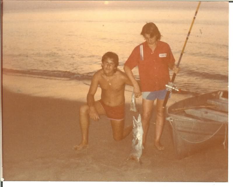 My brother Jorge and Danny Leahy on Delray beach with shark bait and cuda that got bit in half.Danny is now a reputable charter boat captain at Bahia Mar marina in Ft lauderdale