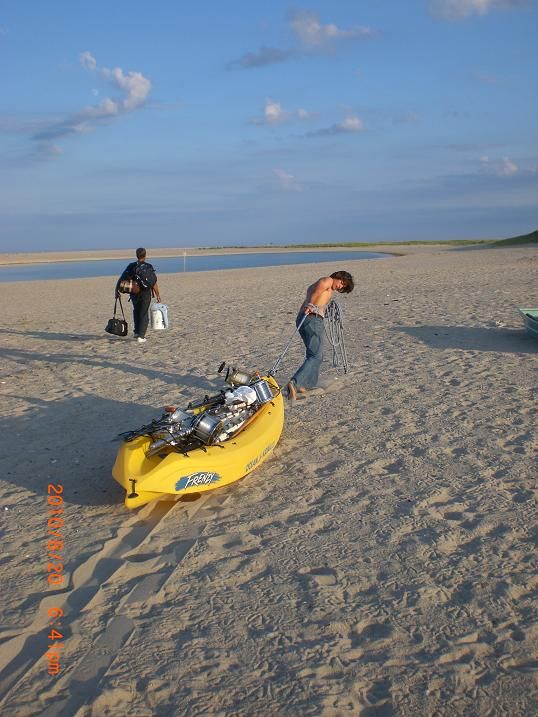 the longest haul ever -nearly one mile over dunes Colby mules the loaded Kayak, one of two vessels used to deploy our MONSTER BAITS