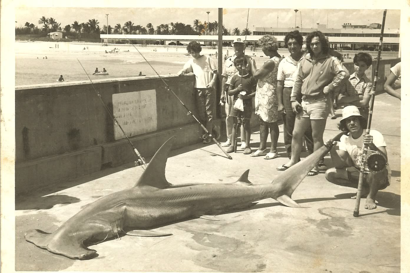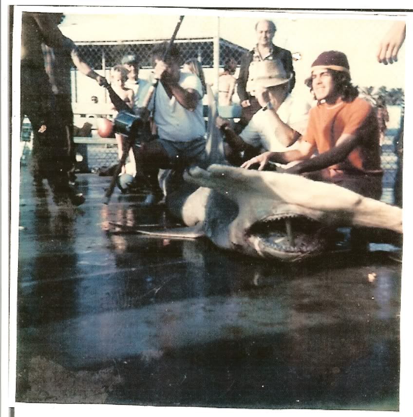 Rene and his 1974 record breaking 14 foot hammerhead shark that was never weighed but would of beaten the existing record (at that time) of 620 lbs caught from Texas