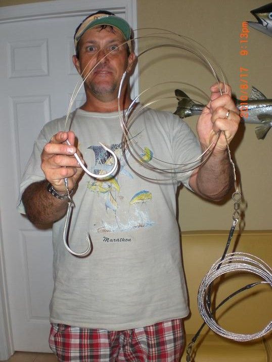 The Great White rigs are prepared--10 feet of triple #19 wire attached to 20 feet of 900 lb cable via 1200 lb swivels and double and triple strength Mustads